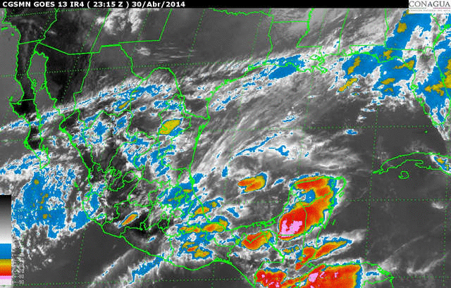 Durante los siguientes días de asueto, el Servicio Meteorológico Nacional mantiene vigilancia ante las condiciones originadas por la presencia del Frente Frío Número 54, que actualmente se extiende desde el norte del Golfo de México, hasta el norte de Veracruz, e interacciona con un canal de baja presión localizado en el sureste del país y la fuerte entrada de aire húmedo proveniente del Océano Pacífico y Golfo de México.